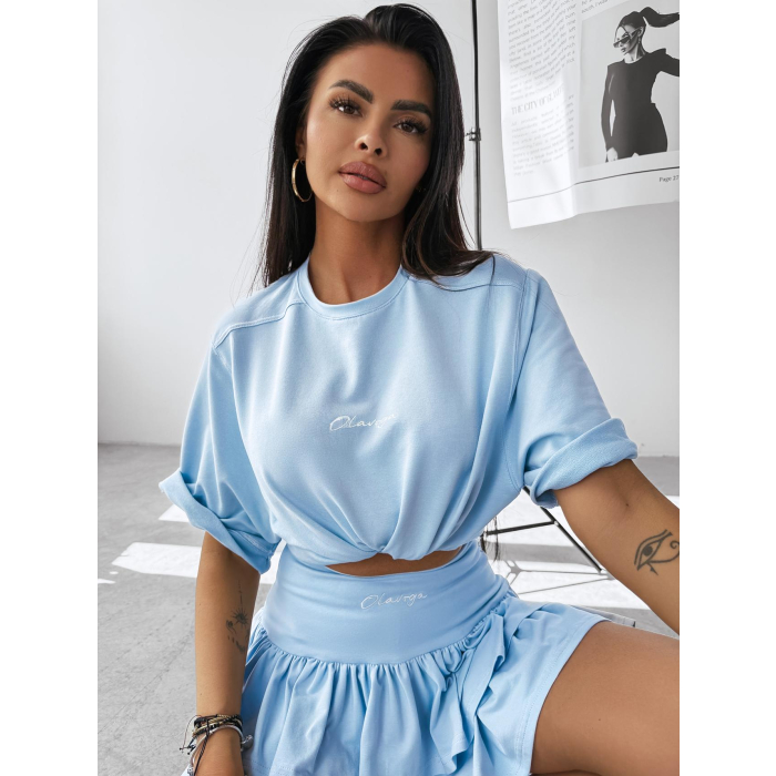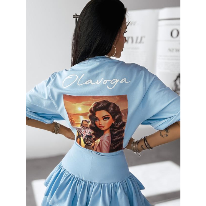 Klasyczny t-shirt z krótkim rękawem, o dłuższym kroju. Wykonany z wysokiej jakości materiału z elastycznej bawełny. Podwinięte rękawy. Produkt posiada przeszycia. Na przodzie pisane, minimalistyczne logo marki OLAVOGA. Tył posiada ciekawą grafikę z obszernym, pisanym logo brandu.