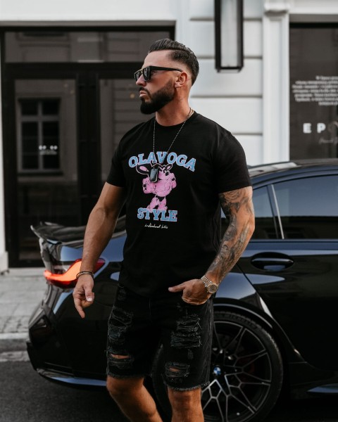 Klasyczny męski T-shirt z krótkim rękawem wykonany z wysokiej jakości, elastycznej bawełny. Przód zdobi wyrazista grafika zaakcentowana dużym logo OLAVOGA i hasłem STYLE — idealny wybór do sportowego lub ulicznego stylu.